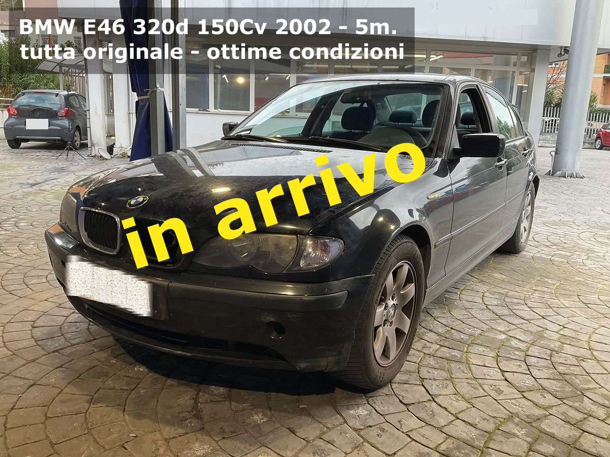 BMW 320 d E46 berlina diesel 150CV 110KW anno 1/2002 - Nero metallizzato - interni originali tessuto grigio scuro - Ottime condizioni di meccanica e carrozzeria 100% originale - inurtata - vettura di non fumatore - custodita in box - nessun amico animale a bordo - unico proprietario - 233000km - Revisione valida fino al: 2/2028 - Qualunque prova - Possibile Assicurazione RC storica a costi minimi - 12 mesi di certificato di conformità - prezzo escluso voltura (circa 670 Euro). Il prezzo si intende senza permuta che sarà valutata dopo visione e prova - vettura visibile SOLO SU APPUNTAMENTO a Torino.